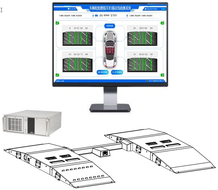 本系統(tǒng)是由北京匯豐隆智能科技有限公司開發(fā)并擁有自主知識產權的一款全自動化乘用車輪胎磨損3D掃描在線檢測系統(tǒng)。車主/司機僅需駕駛車輛從檢測系統(tǒng)駛過,檢測系統(tǒng)即可快速、準確的檢測出車輛輪胎的磨損狀態(tài)并可在顯示屏或及智能電視上顯示出本次檢測結果。檢測報告具有精度高、速度快、顯示界面信息齊全等特色。同時,檢測報告記錄了被檢測車輛的車牌及車型信息,便于日后方便準確查詢及對比。